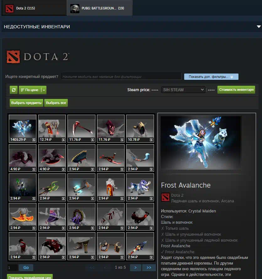 Dota 2 inventory