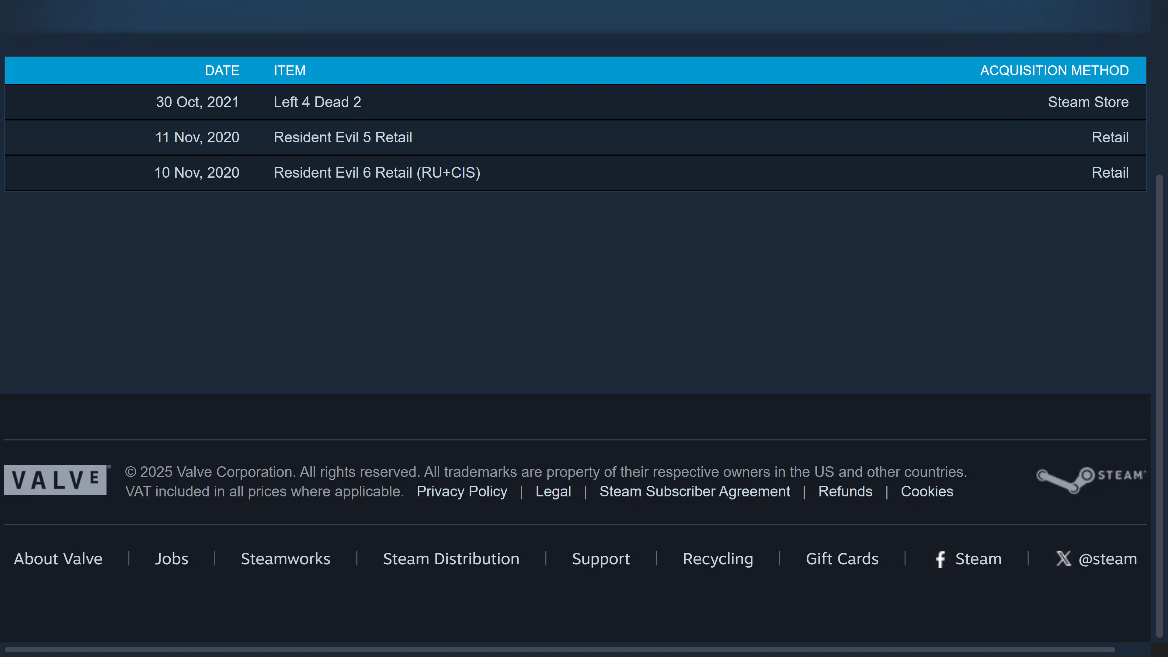 | Title | Total | Purchase date | Type | Source |