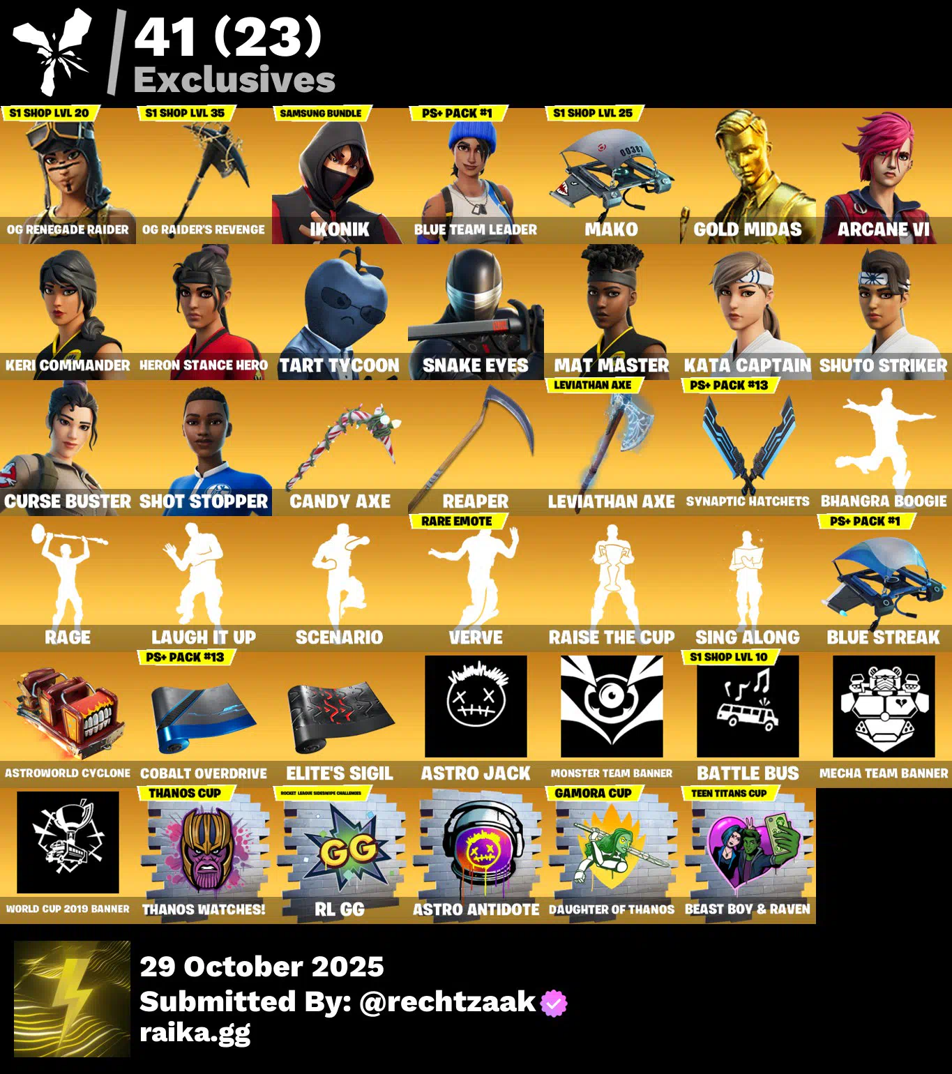 [PC/PSN/XBOX] 183 skins | OG Renegade Raider | IKONIK | Arcane VI | Leviathan Axe | OGE DELETED