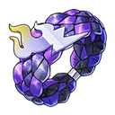 A ceremonial hunting bow that has become petrified over time. The trinkets on it are still visible. It grants the wielder the power to withstand the winds of time.