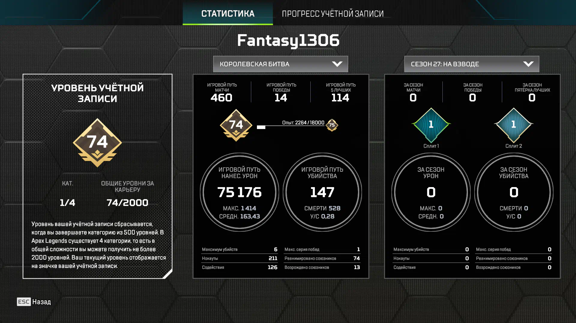 [EA] - APEX | Ranked open | [74 LVL] - [34 LEG] - [1 relic] | Relic Wattson | Screenshots in description |