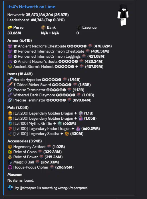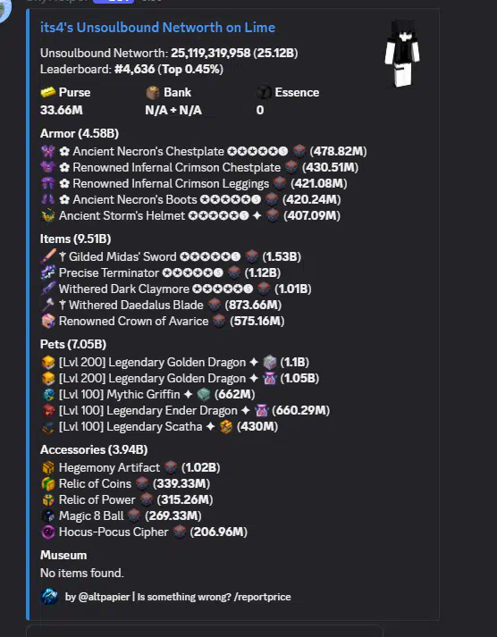 Skyblock 36B soulbound networth 25b unsoulbound