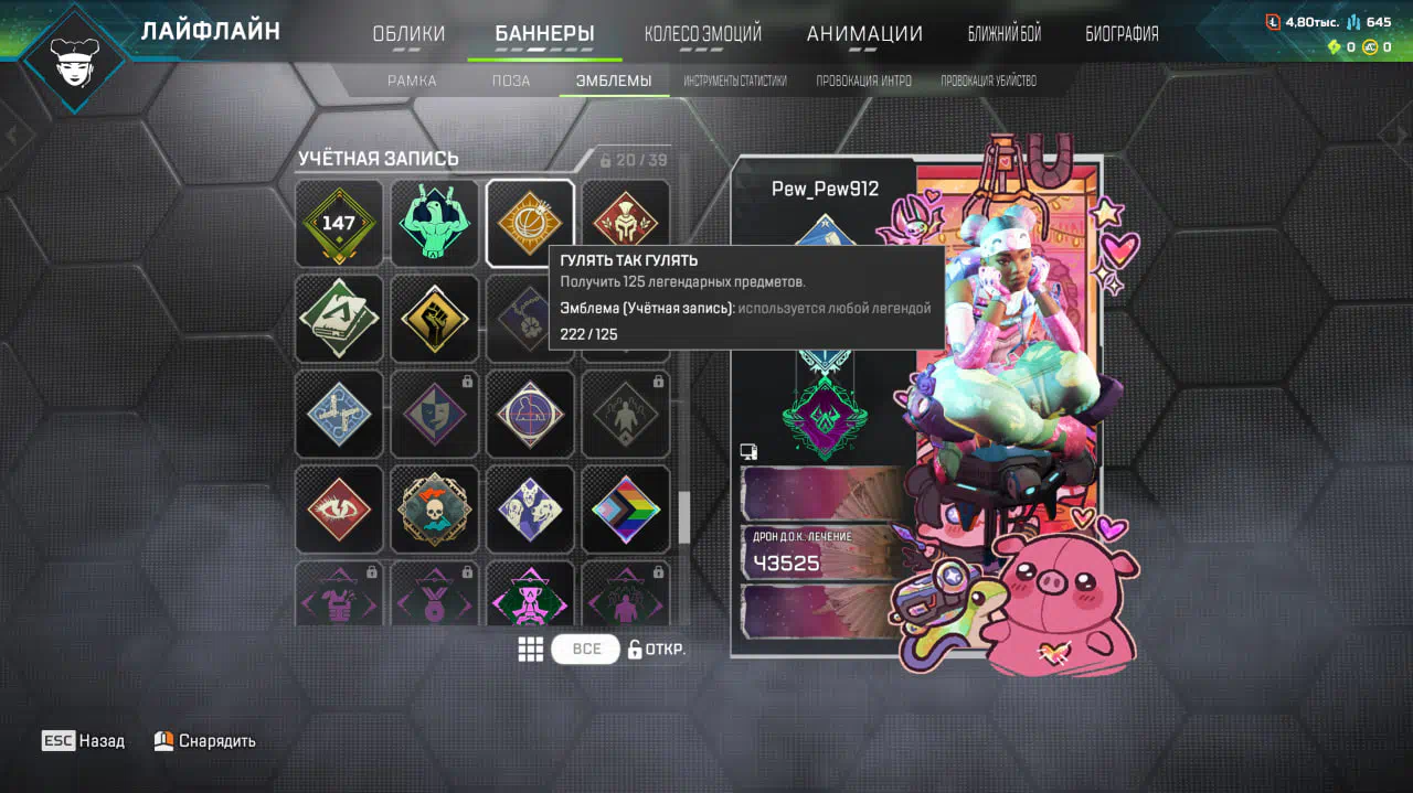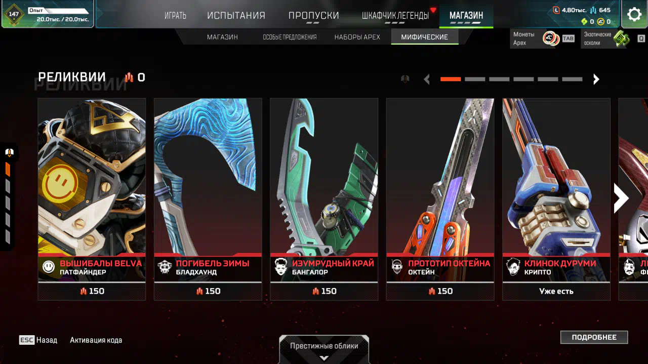 Apex 647 lvl | relic crypto | 222 leg | flatline