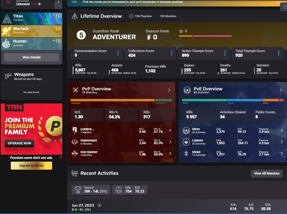 Destiny 2 |47 ч.|Adventurer 5. Kills 5,807.Смотрим скрин.