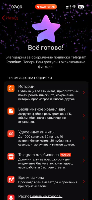 Если кнопка «Активировать» не отображается, попробуйте сменить приложение Telegram (например, с мобильного на десктоп) или воспользуйтесь веб-версией.