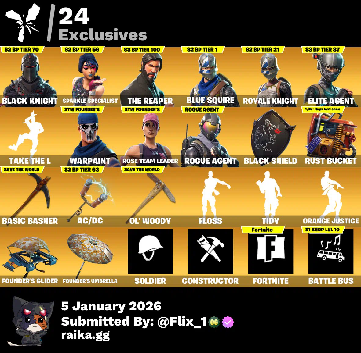 Died 58 Skins | OG STW | Renegade Raider | Black Knight | Sparkle Specialist | The Reaper | Blue Squire | Royale Knight