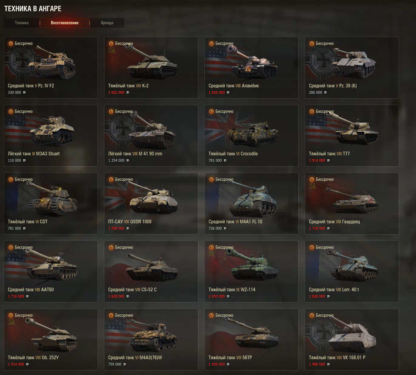 Можно восстановить прем танки: