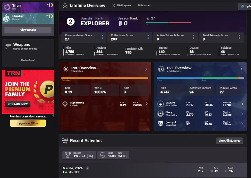 Destiny 2 |Explorer 2. Kills 4,750.Смотрим скрин.