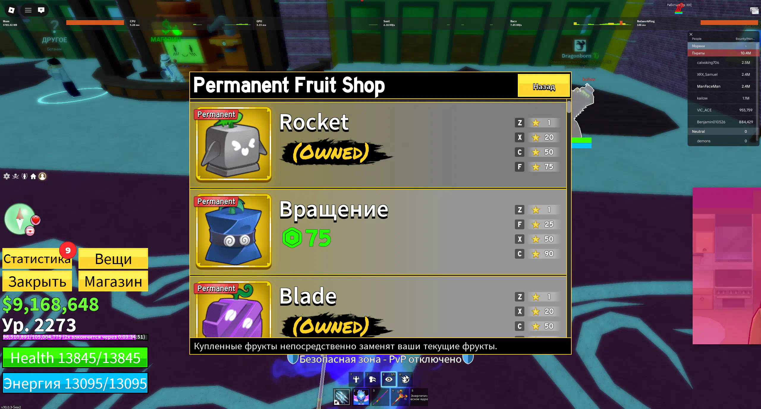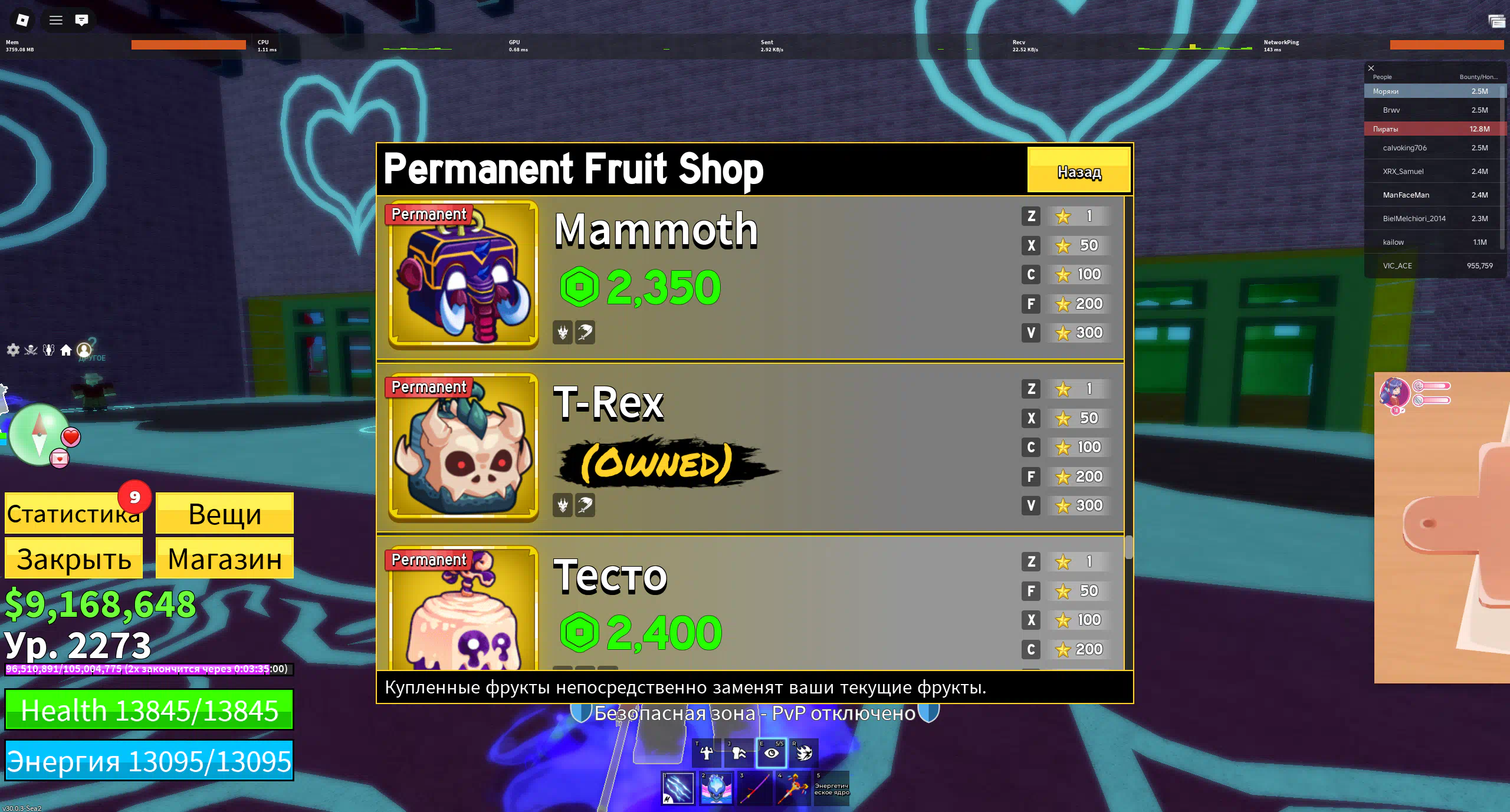 Blox fruits 2273 LVL. PERMS - Gas + T-rex + Blade + Rocket + 1,433 Robux Inventory cost