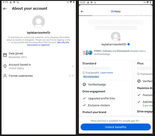 - Подключение по ежемесячной подписке (Синяя Галочка) Meta Verification