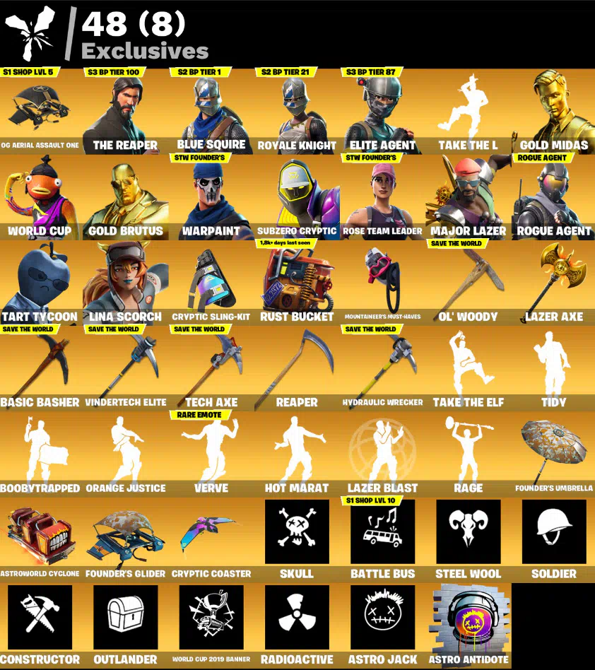 156 Skins | OG Aerial Assault One + 2x Knights + The Reaper + OG STW | Last Match 271 days ago