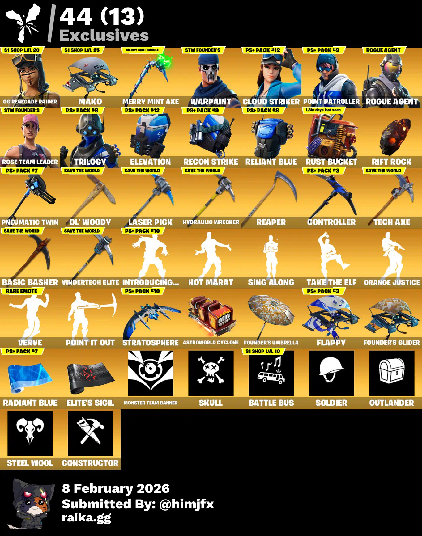 No ticket | 110 Skins | OG STW | Renegade Raider (OG) | Merry Mint Axe | Introducing...