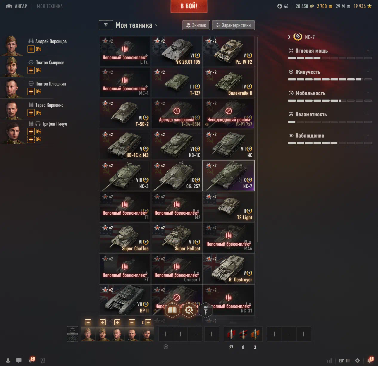 Private. IS-7. 29 million silver, 20k bonds, 2.7k gold
