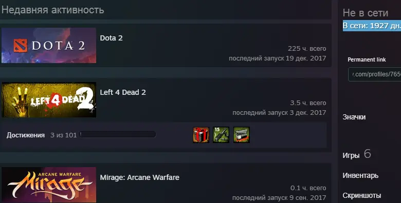 Dota|225,2 ч.|(за рейтинг не отвечаю).. PAYDAY 2.Trove.+игры.В сети: 1927 дн. назад